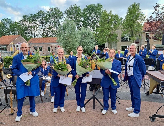 Al - net - al - net… it wie juster wat gûgeljen mei de wolbekende buienradars. Már Albert en Patrick seagen it wol sitten en mei in bus fol dekkleden achter de hân waard alle ynstrumintaria nei Nij Dekama brocht. Dêr spilen wy foar de bewenners fan Nij Dekama, Weidumers, mar ek in protte famyljeleden, mei sawat de komplete klup. De slachwurkkanjers krigen harren diploma’s, mar ek leafst 4 jubilarissen waarden yn it sintsje set: