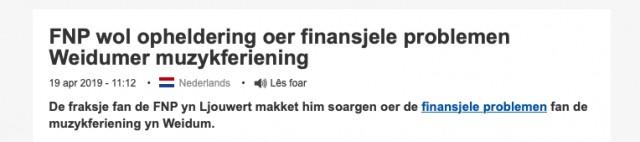 Fantastysk wol, dat it wolwêzen fan in muzykferiening elts sa oan it hert giet en Omrop Fryslân, de Ljouwerter Krante, de FNP en ek it Frysk Deiblêd oandacht hawwe foar it ûnderwerp. (artikels fynst fia de linkjes)