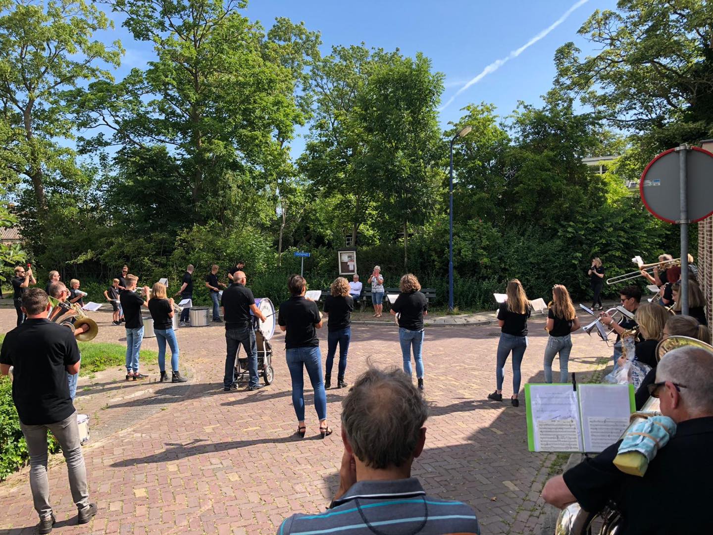 Leafst 6! leden fan Harmonie Weidum hiene dit koroanajier nammentlik in muzikaal jubileum. Dit woene wy perfoarst net foarby gean litte; sy krigen in aubade fan ús muzykferiening, in oarkonde, in sulveren of gouden spjelde en in kado.