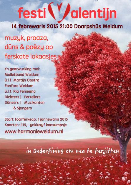 Gjin standert konsert. Dus: Ferras dyn leafste leaf en bestel kaarten! Priis €15,- ynklusyf konsumpsje, te krijen fia ús webside. Hjir binne it folsleine programma en alle nammen fan de meiwurkers en muzikanten ek te finen.