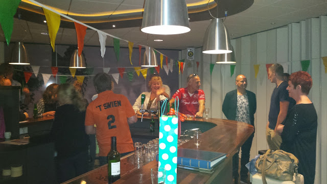 Wy ha doe mei syn allen ûnder it genot fan in hapke, drankje, in inkele trien, ferhalen en oars sawat ofskie nommen fan Jan Geert en winsken him alle goeds en gesellichheid ta by de fanfare yn Stiens wer as hy no dirigeart.