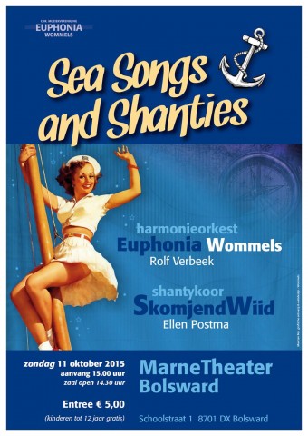 Op zondagmiddag 11 oktober geeft het harmonieorkest van Euphonia een concert in het Marne Theater te Bolsward. Zij geeft dit concert in samenwerking met het shantykoor Skomjend Wiid. Het thema van dit concert is „Sea Songs and Shanties“. Lang geleden maakten zeelieden al gebruik van muziek om hun gevoelens en ervaringen tijdens het varen te uiten. Dit deden zij veelal door te zingen. Tijdens grootse zeereizen gingen er ook muzikanten mee aan boord. De melodieën hebben vervolgens componisten geïnspireerd tot het schrijven van muziek voor grotere ensembles en orkesten. Tijdens deze zondagmiddag kunt u van deze rijke muziekgeschiedenis genieten.