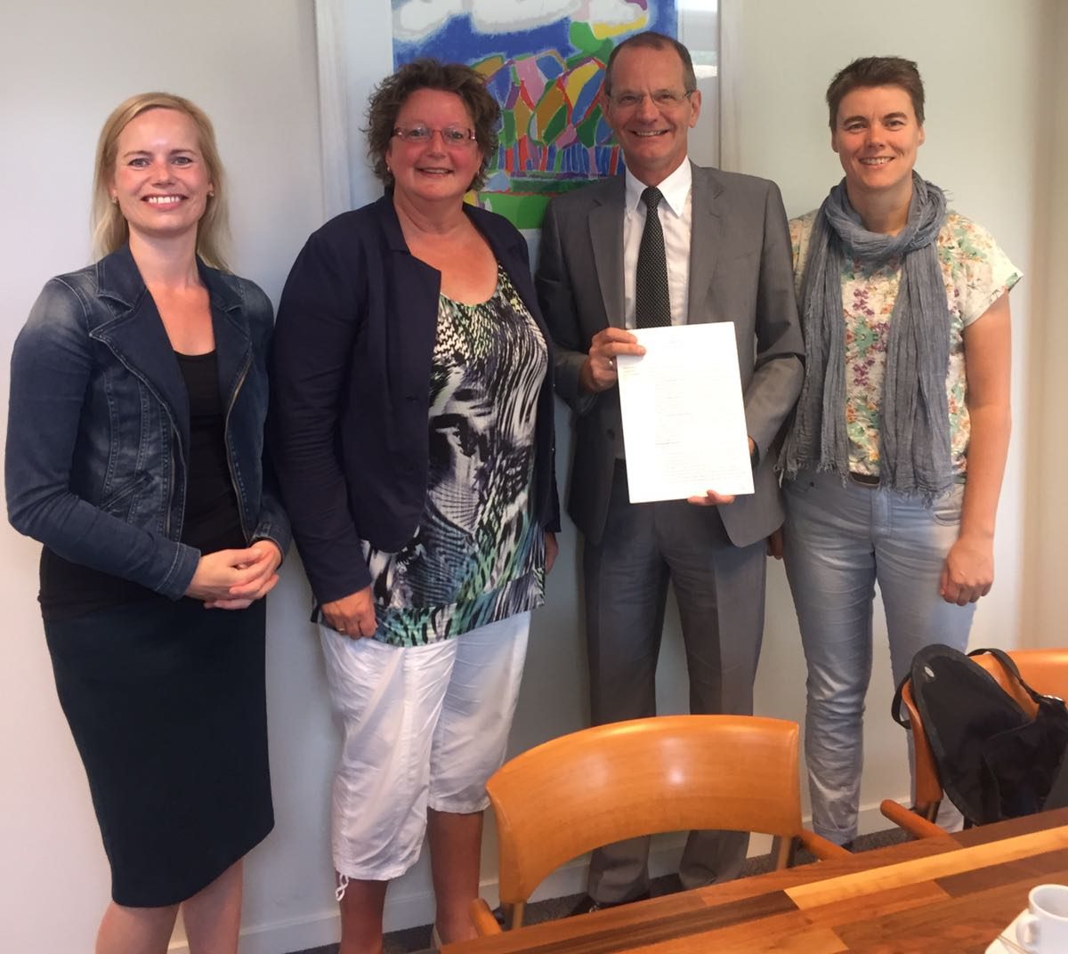 Het kersverse eerste bestuur bestaande uit Annewiep, Tryntsje en Henny waren vanochtend te gast bij notaris mr. S. Swart van De haan Advocaten & Notarissen in Stiens. Hij draagt de cultuur en muziek een warm hart toe en heeft daarom kosteloos de akte van SML gepasseerd. Hiervoor wil nieuwe vereniging hem hartelijk bedanken.